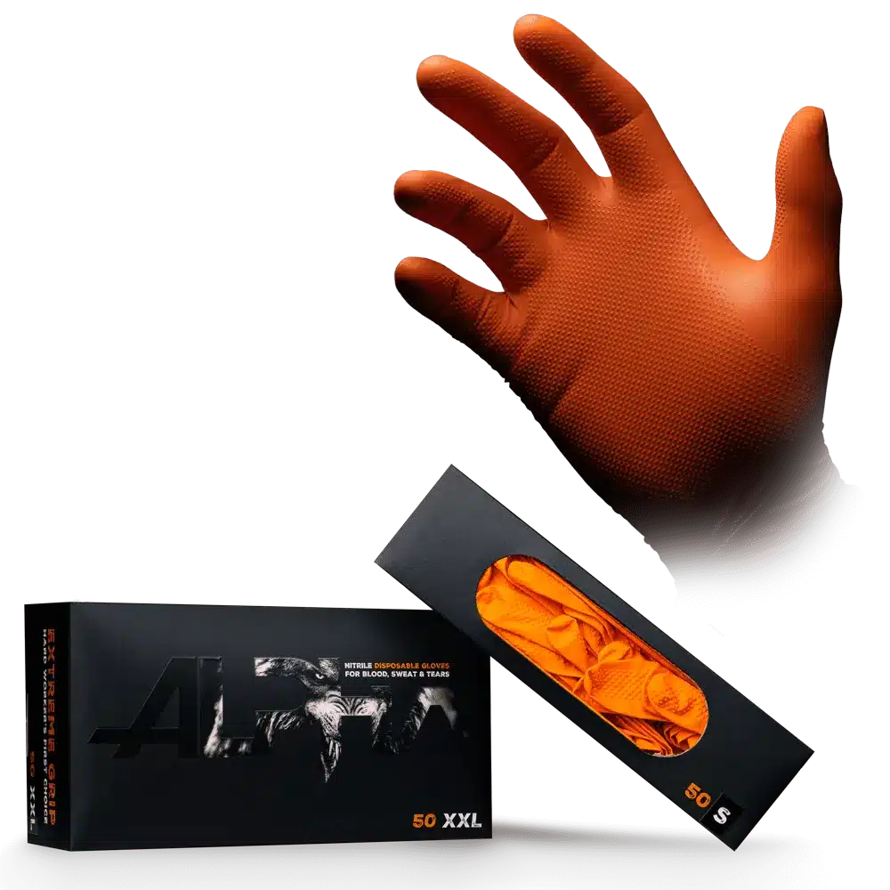 Grip Handschuhe ALPHA EXTREME GRIP Nitrilhandschuhe Orange Diamantgrip 50er Box
