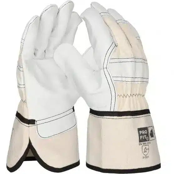 PRO FIT | Rindvoll Leder Arbeitshandschuhe, | Watt, natur | 12 Paar