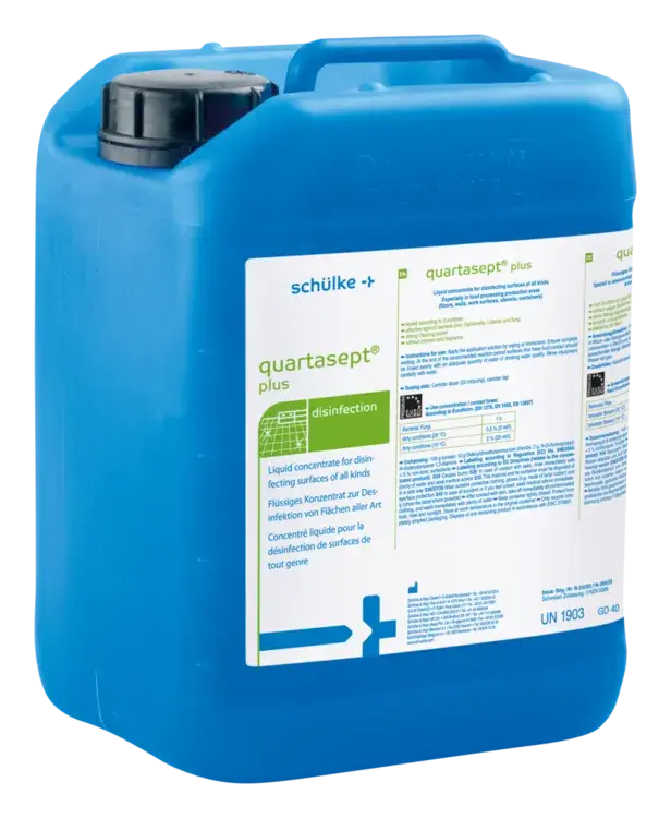 quartasept® plus ist ein flüssiges Desinfektions- und Reinigungskonzentrat, das auf einer Kombination von quartären Ammoniumverbindungen und Aminderivaten basiert. Es eignet sich hervorragend zur effektiven Reinigung und Desinfektion von Flächen und Geräten in verschiedenen Bereichen der Lebensmittelverarbeitung, pharmazeutischen und kosmetischen Industrie.