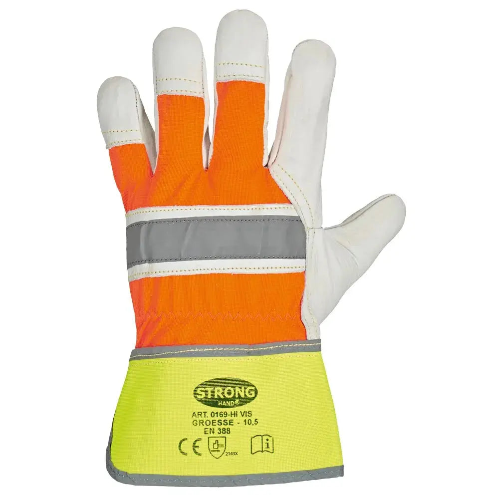 Stronghand HIVIS Warnschutz-Lederhandschuhe Rindvollleder Natur/Orange