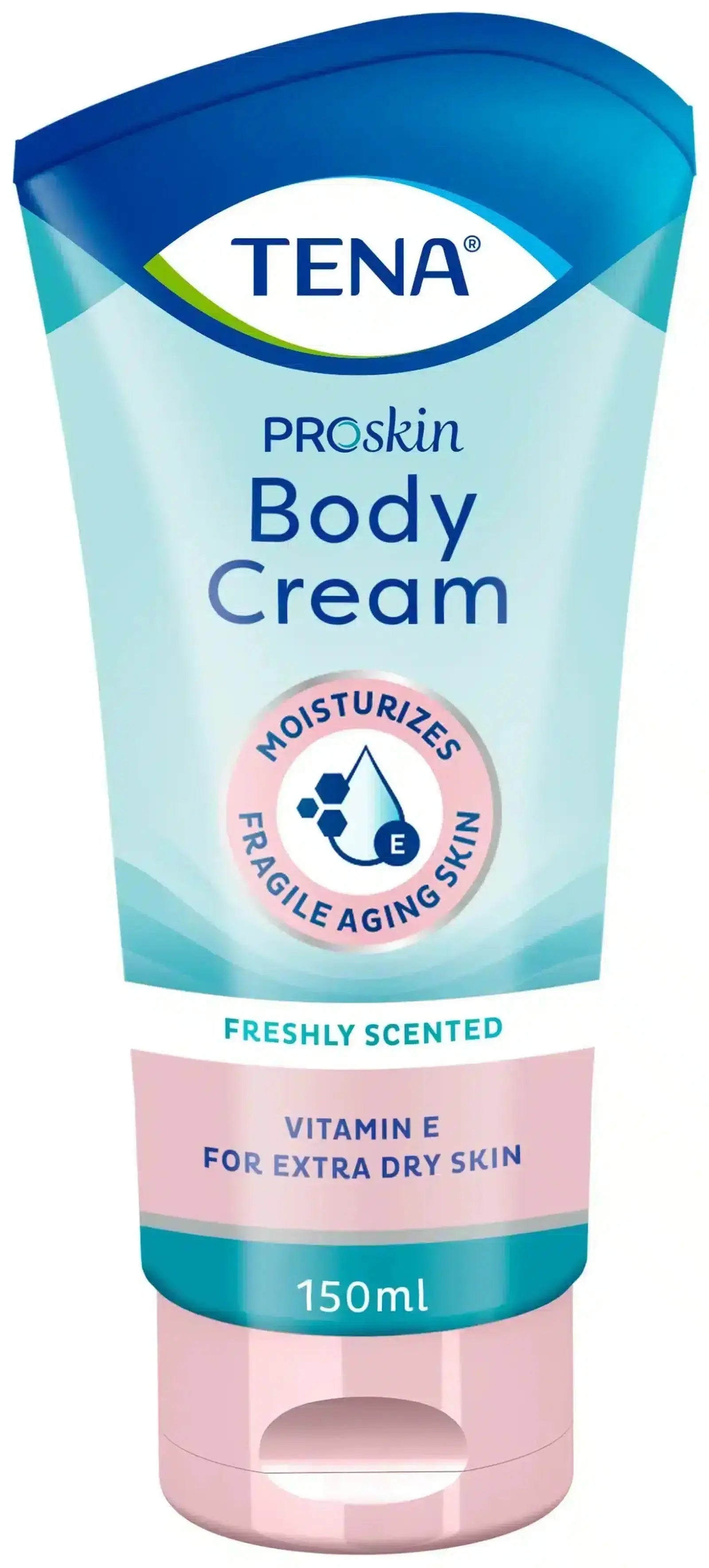 TENA Body Cream ist besonders ergiebig und wurde eigens für die Pflege sehr trockener und empfindlicher Haut entwickelt. Die dermatologisch getestete Hautcreme enthält natürliche, pflegende Öle und Vitamin E zur Förderung der Hautgesundheit. Dank der milden Inhaltsstoffe eignet sich das Produkt ideal für die tägliche Anwendung, besonders nach dem Duschen oder Baden.