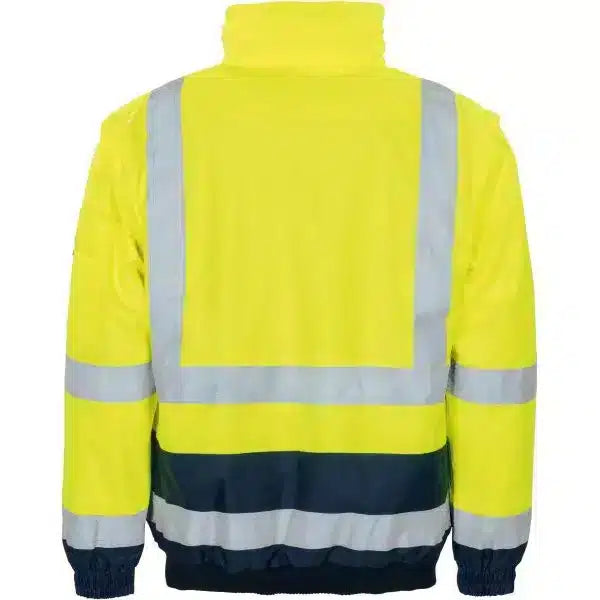 VIZWELL VW126C | Warnschutz Pilotenjacke | 4 in 1 | Wasserdicht | Leuchtgelb-Marine